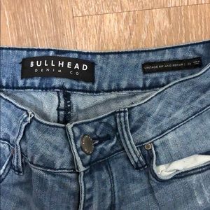 Blue jeans with darker color in the frayed areas
