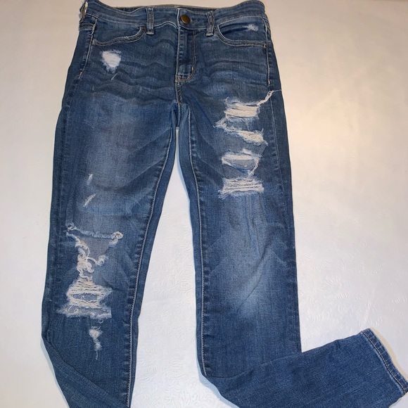 Hi-rise jeggins with rips. Stretchy material.