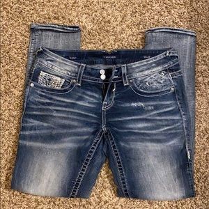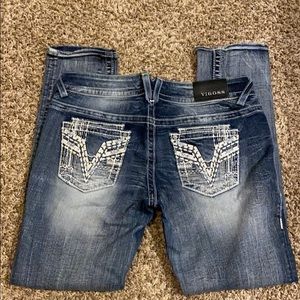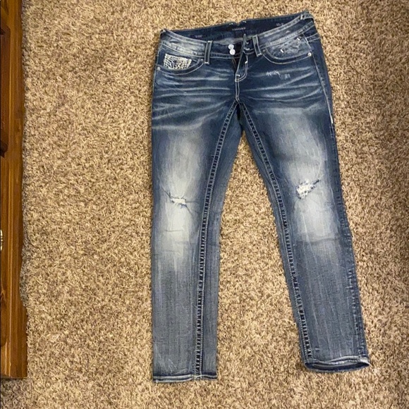 Vigoss jeans from maurices. Bottoms can be cuffed or left long. Distressed look