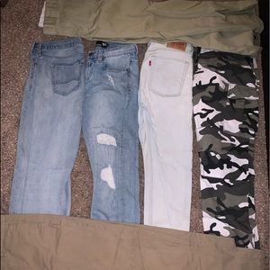 All are name brand such as Levi's, RSQ, true religion, American Eagle, aeropostale, dockers, size 29x30 or others are 30x30