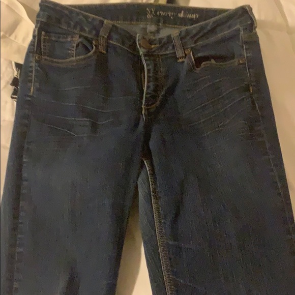 New York and Company Curvy Skinny jeans. Dark denim. Worn twice and grew out of them. Made for Tall. Hugs and defines waist. Bought in women’s for teens equivalent to size 6. Love brand because color does not fade in washes