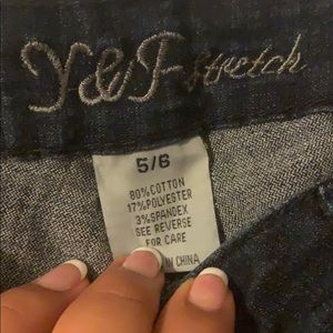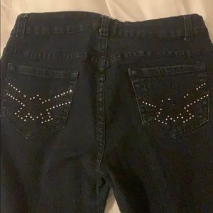 Never worn. Dark denim with jewel accent on back. Size 5/6