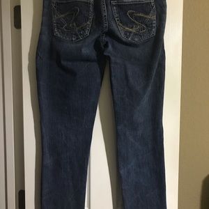 Used condition. Silver Lola Jeans. Size 33 waist and the pants have been altered to have an inseam of 29.5”. See photos of altered bottoms.