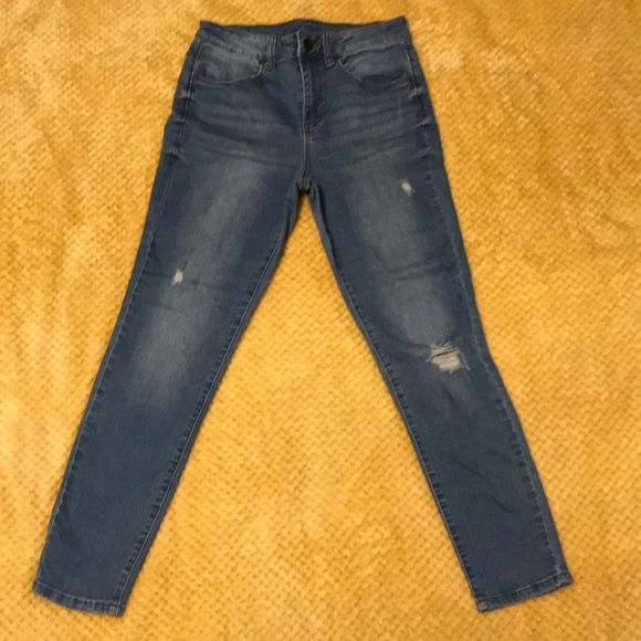 Medium dark wash with a few small rips