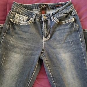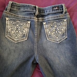 Really cute Earl Brand Jean's size 8 regular. Gorgeous gems and bling on back pockets with no damages or missing stones. No holes or fraying at the bottom. Really good condition. Warn roughly 4 times. Smoke free pet free home. Feel free to ask questions. Happy Poshing❣