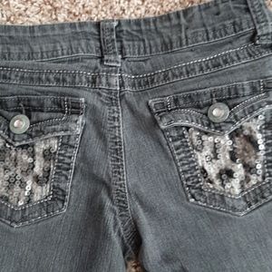 Dark grey Tapered leg stretch jean Sequins pockets Size 10 Good condition
