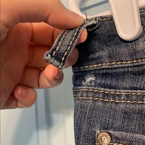 Two belt buckle loops are ripped (as shown), but are easily reattach-able.