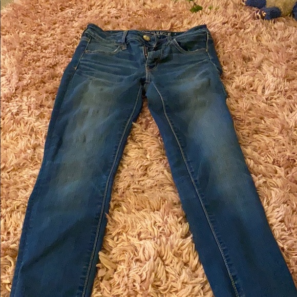 American Eagle super stretch jeggings they’re a darker blue with holes