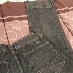 Like new excellent condition, TOMMY HILFIGER 3 quarter Jean's, 2 front side pockets, 2 stitched back pockets in a light tan, bottom of legs have about 1/2 inch slit, really nice for upcoming warm seasons. Woohoo.