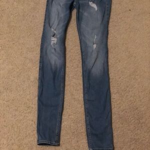 Light ripped blue jeans that are high rise super skinny classic stretch