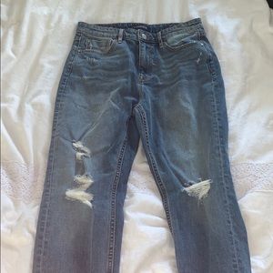 Tapered Boyfriend cut jeans with frayed bottoms
