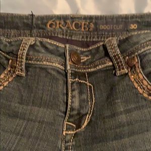 Blue jeans Grace in LA boot cut in perfect condition, no missing stones...