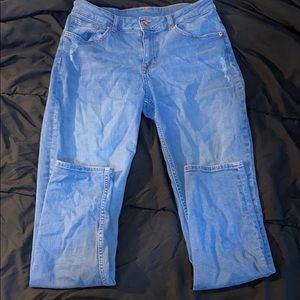 Skinny jeans.. stretchy.. light distress.. bled once when first washed but hasn’t since.. 7/10 condition.. about a 27/28” inseam