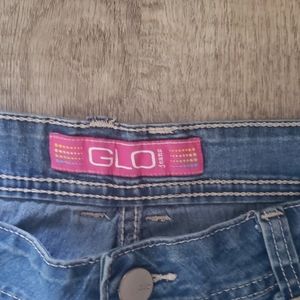 They are genes that are denim colored and has little pink diamonds and are super cute