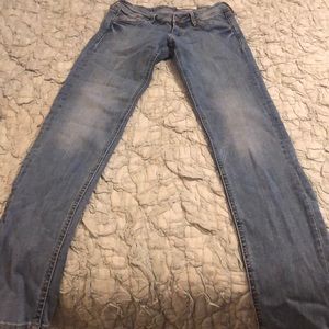 Light colored “super skinny, super low waist” jeans.