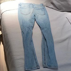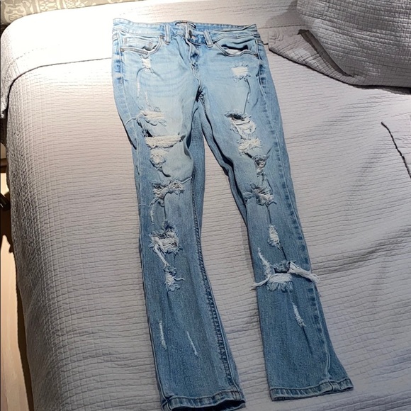 Distressed light wash jeans. 10/10 condition. Perfect for fall & cute to wear out or casually. Flattering!