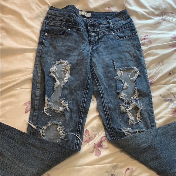 Holy stretchy jeans with button up front