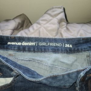 Avenue denim girlfriend jeans dark washed distressed. Great condition