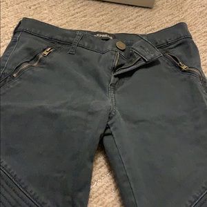 Dark army green-grey moto leggings with ankles cut off