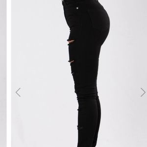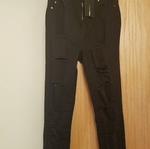 Distressed black skinny Jean's 5 pockets, stretch fabric, 31 Inseam 80% cotton 5% spandex