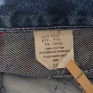 Denim jeans, faux suede trim pockets, approx length 42", size 14 ( see picture on waist size)