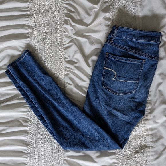 Super stretch, thicker jean material, jegging, regular length, mid-rise