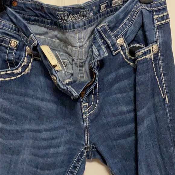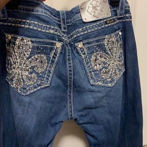 Designer Jeans . MissMes. Size 29 Women. MidRise Easy Straight. Worn Once . Good Condition. Diamond and Rhinestone pockets .