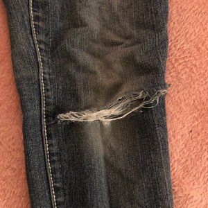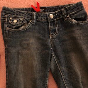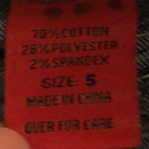 Thrifted, and has holes I randomly got on a farm. Very cute, gems on back pockets are missing ,but very cute!
