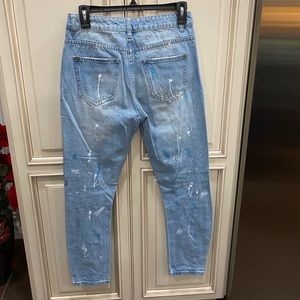 Cotton on paint splattered jeans (pink, white, blue) - distressed straight leg