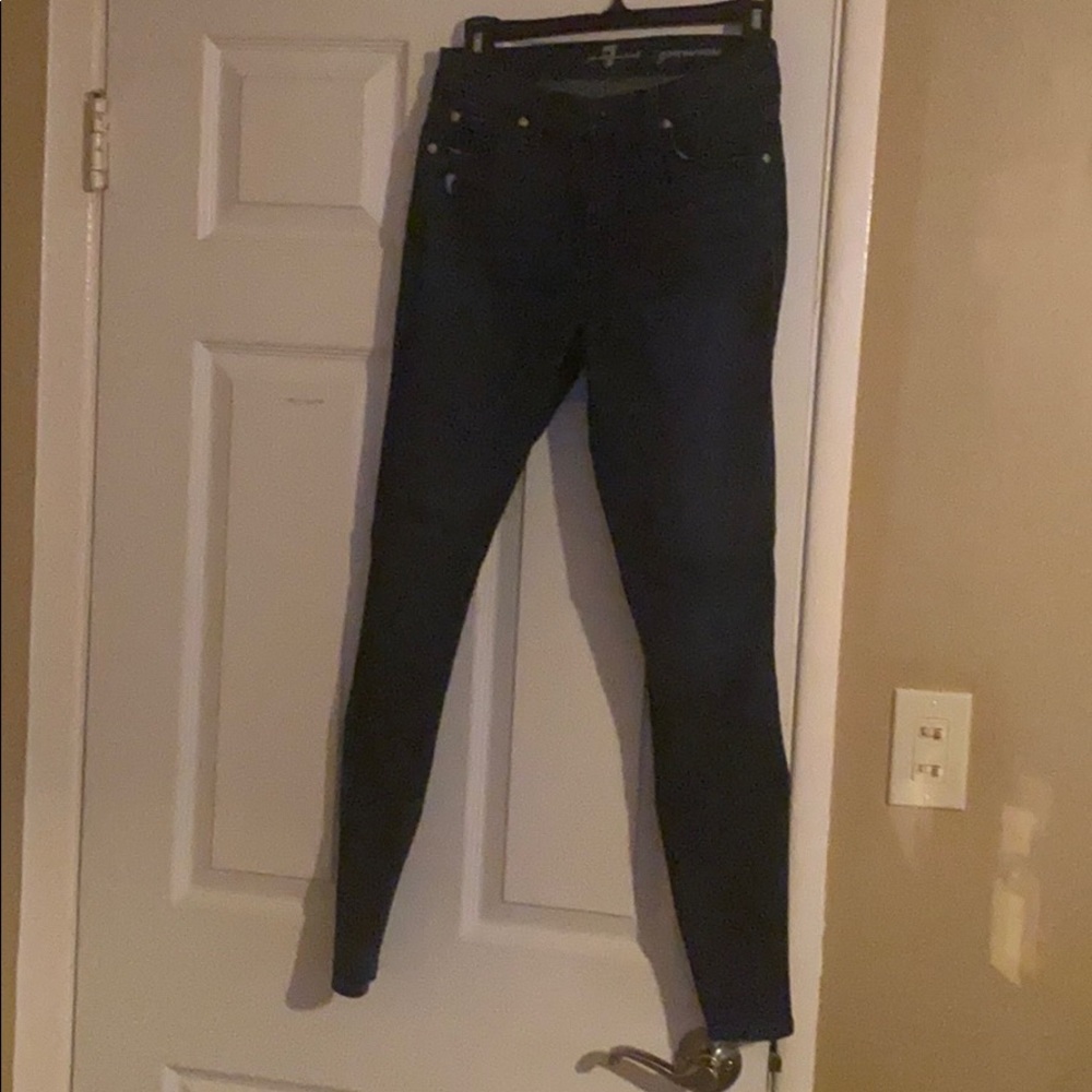 7 for all mankind gwenevere jeans in dark blue with little tears and fading around pockets(jeans have never been worn, they were purchased this way)