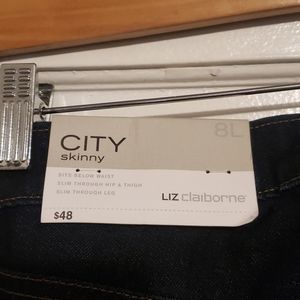 Brand new dark denim skinny jeans. Never been worn, tag still on. They are size 8long for those who are taller.