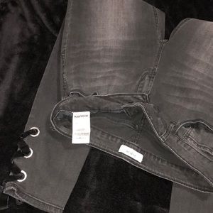 Stylish grey jeans, with cute ribbons 🎀 at the hem. Great for anytime wear 😘