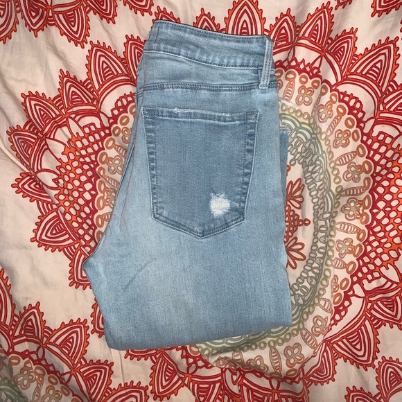 - “low rise skinniest ankle” - like new, barely worn - distressing on front and bottom of pants