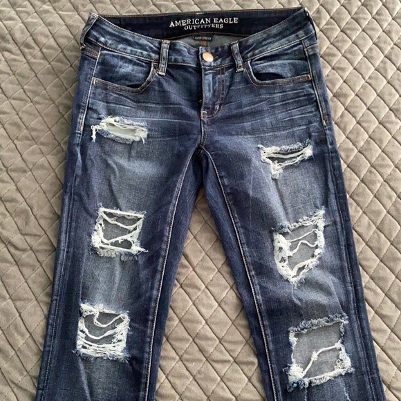 They are a dark wash Jeans. They are low rise. These jeans also stretch quite a lot and are comfortable. They are fairly used
