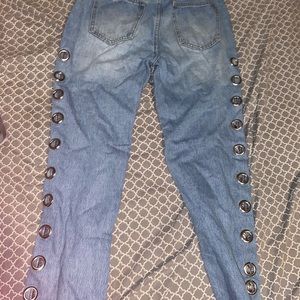 thrifted jeans size 8 . but fit more like a size 2 or 4 .