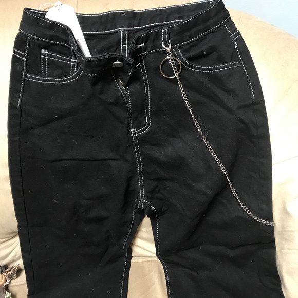 Black jeans with chain. Supposed to be large but fit is more like a size 6