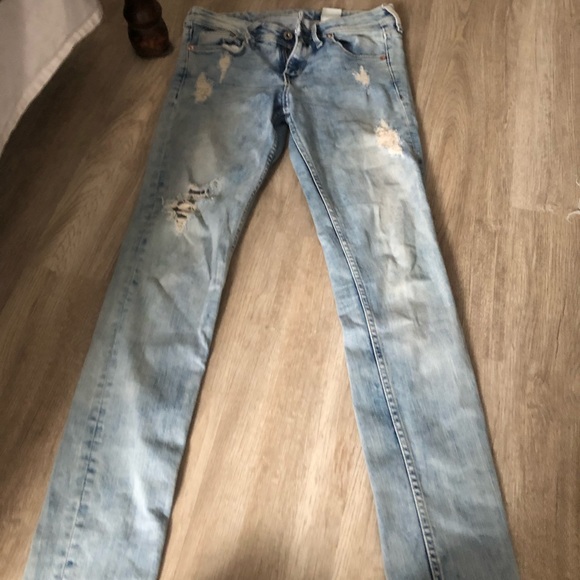 Skinny, low waist. 28/30. In great condition, had holes in them that were for the style