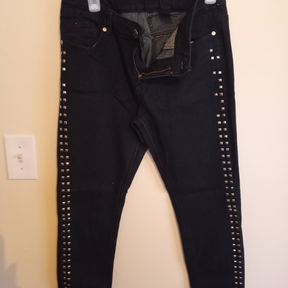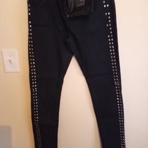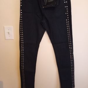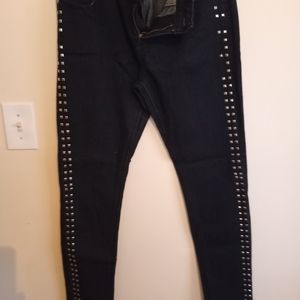 Black stretche jeans with studds down the legs. The fit is more like a size 13.