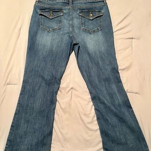 Only worn a handful of times. They are sized 16 petite but are more like misses length, that is why there is wear on the bottom of the jeans, pictured.