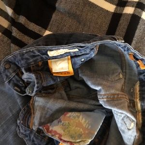 These jeans are worn but looks great love them on but to small for me any girl that buys these jeans are going to love them there made is Vegas studio these are very expensive jeans the ticket inside said 30 waste and a short zipper 37 inches long there around a 7 check them out 🥰
