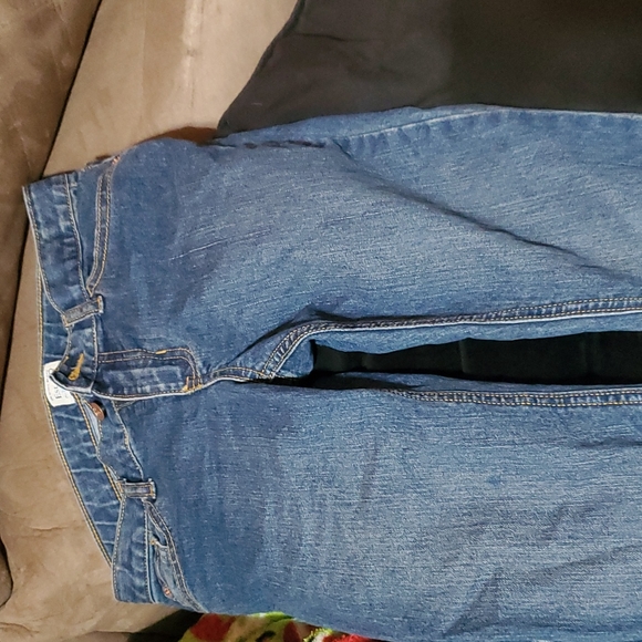 dark jeans with cute pocket details on back.. worn once, skinny stretch with expandable band