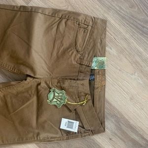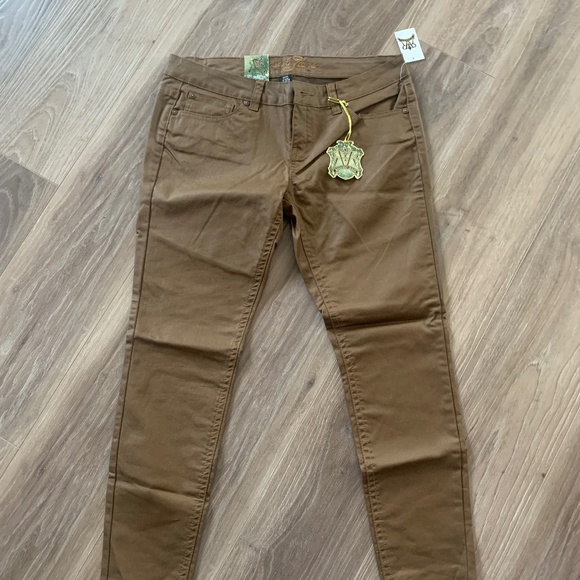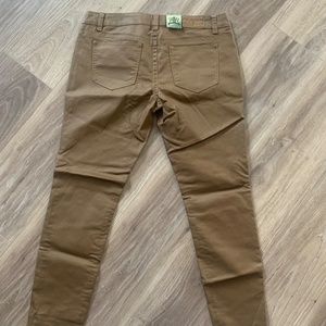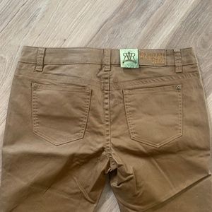 I'm not sure how to describe these! They are a thicker Jean with a little bit of sheen to them. I absolutely love them and wish they fit.