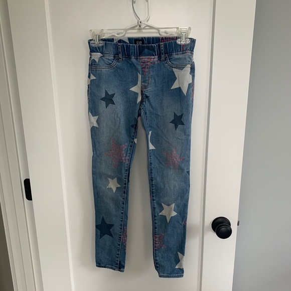 Size 10 girls regular stretch jegging with star print. Never worn Smoke free home.