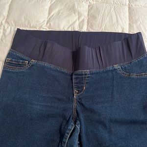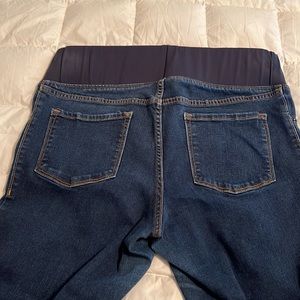 Like New EEUC wide stretch waistband Dark Navy Denim. Jean body 63% Cotton 18% polyester 1% spandex & waistband is 84% polyester 16% spandex