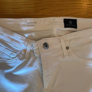 AG white jeans. Skinny, stretch. Good condition, small, faint tan stain on left leg as displayed in photo