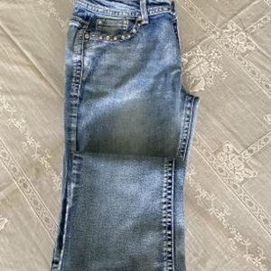 Light faded blue boot leg stretch jeans size 7, they have both front and back designer pockets