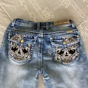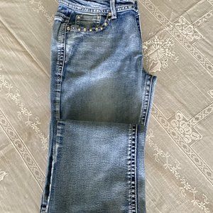 Styled Platinum Plush beaded blue faded look jeans, they are stretch and very attractive. They are boot cut.