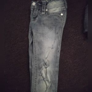 they are rock revival jeans they have a tear but its where the actual rip of the jeans is