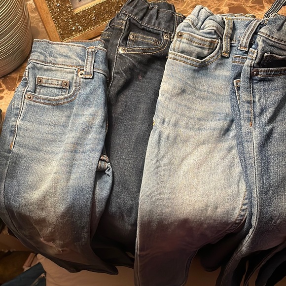 Good used condition one pair of jeans has 2 small marker marks on them hardly noticeable.
