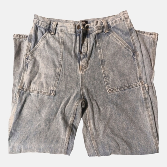 Simple Society carpenter pants denim wide leg. enjoy your day. hanging out with family and friends or just throw on a pair of chucks and keep it going. fun stylish you definitely stand out . no Stretch